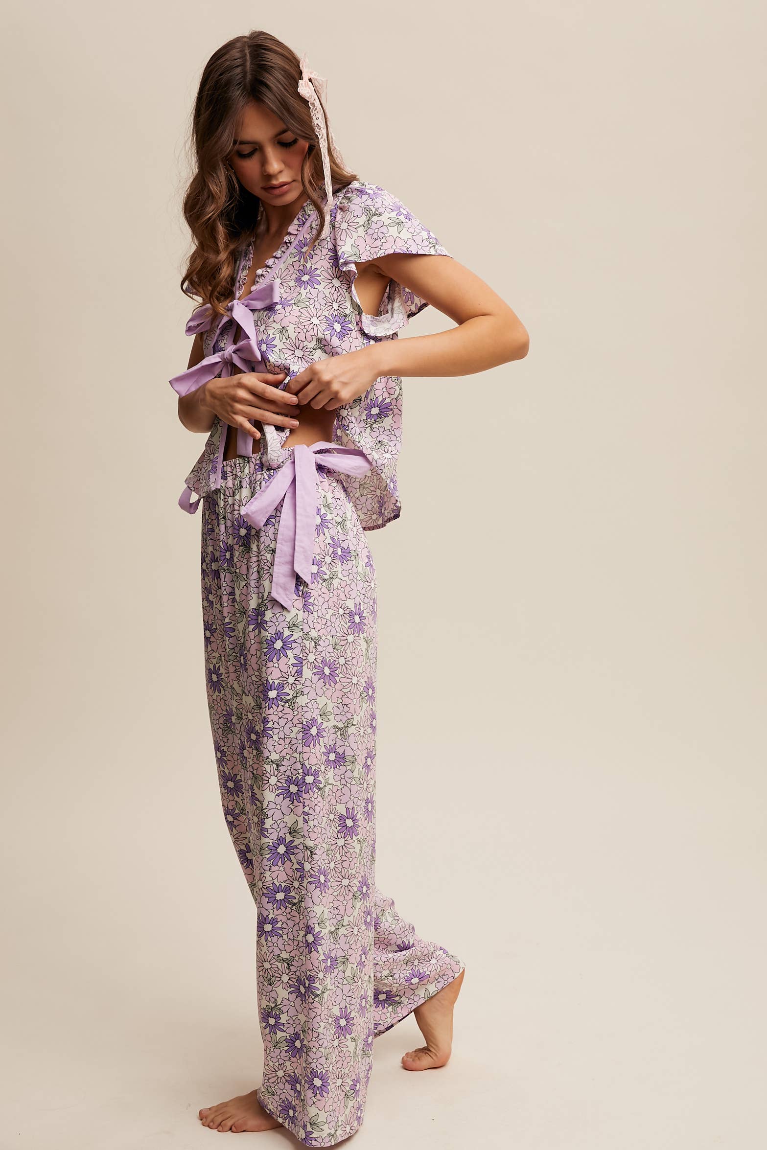 Lavender Floral Top and Pant Set
