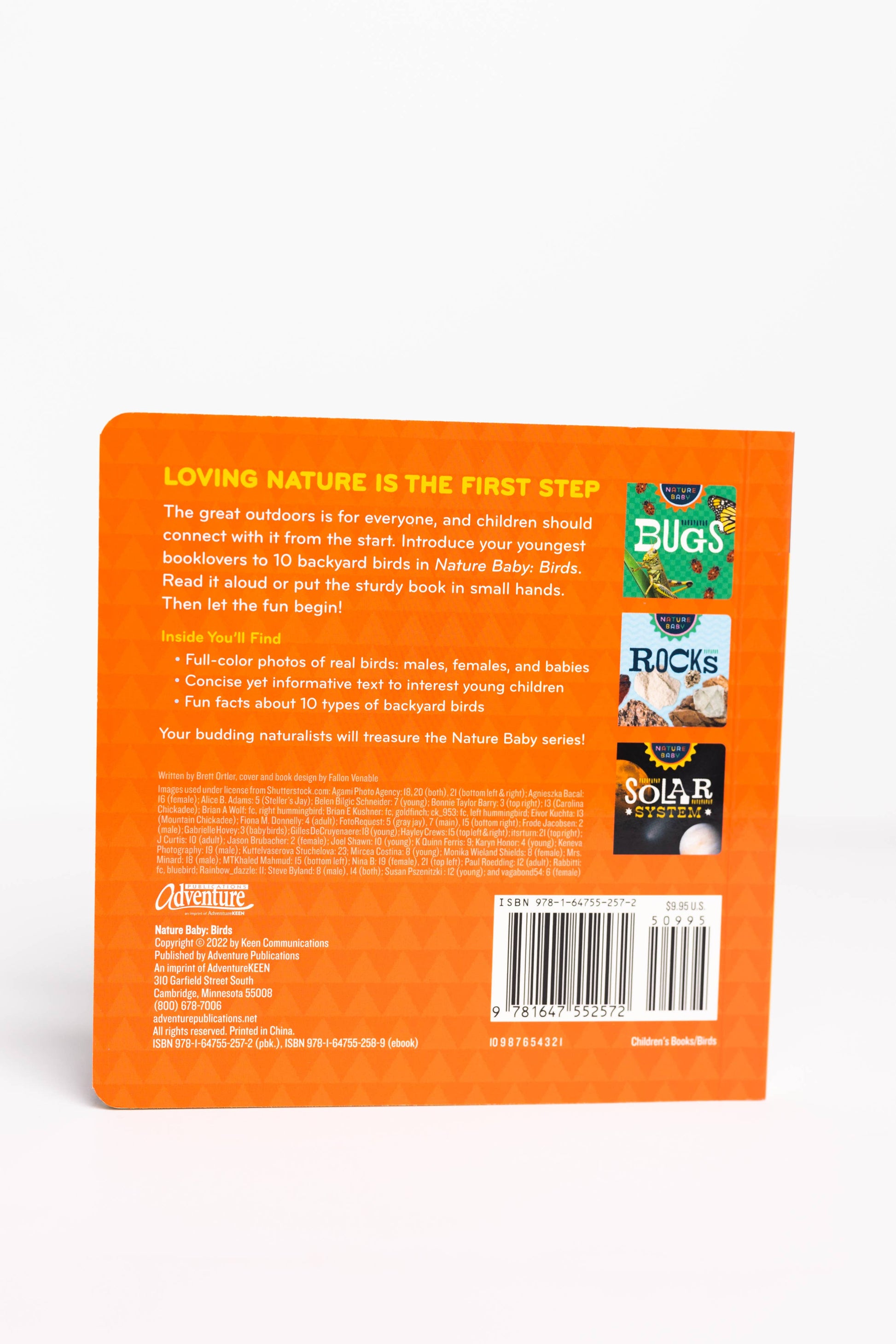 Children are never too young to begin learning about and appreciating nature. That's the idea behind the Nature Baby series of board books, and it's exemplified in Nature Baby: Birds. Ideal for your family's youngest nature lovers, ages 0-5, the board book utilizes full-color photography and short, simple text to showcase 10 beloved types of backyard birds.